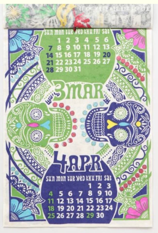 メキシコ「死者の日」の象徴のカラベラを、大胆にデザインしたカラフルなカレンダー。